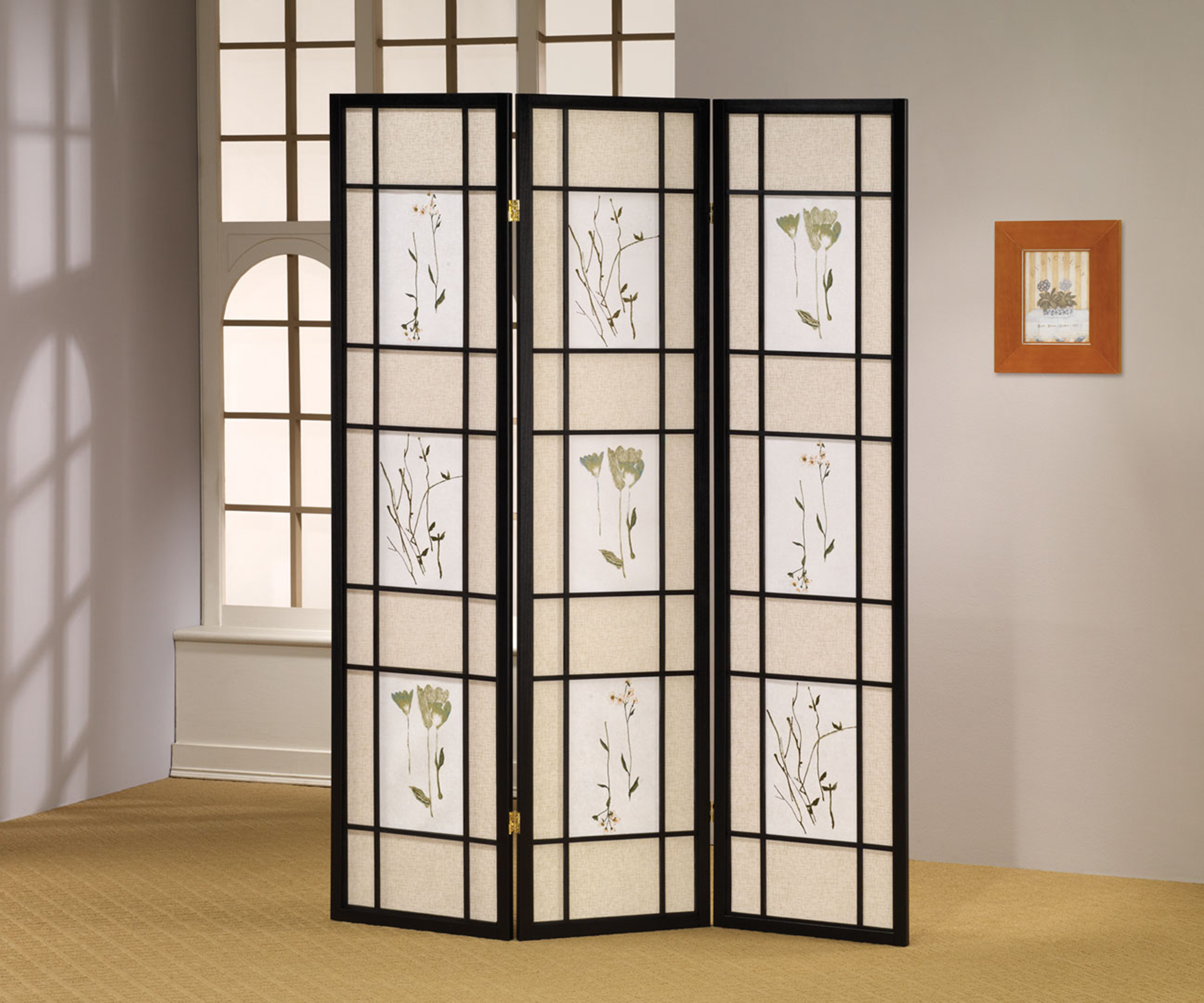 • One-Sided Design, Features 3 floral picture frame on each shoji paper panels. • Each Panel measures 19"L x 1"W x 70"H.