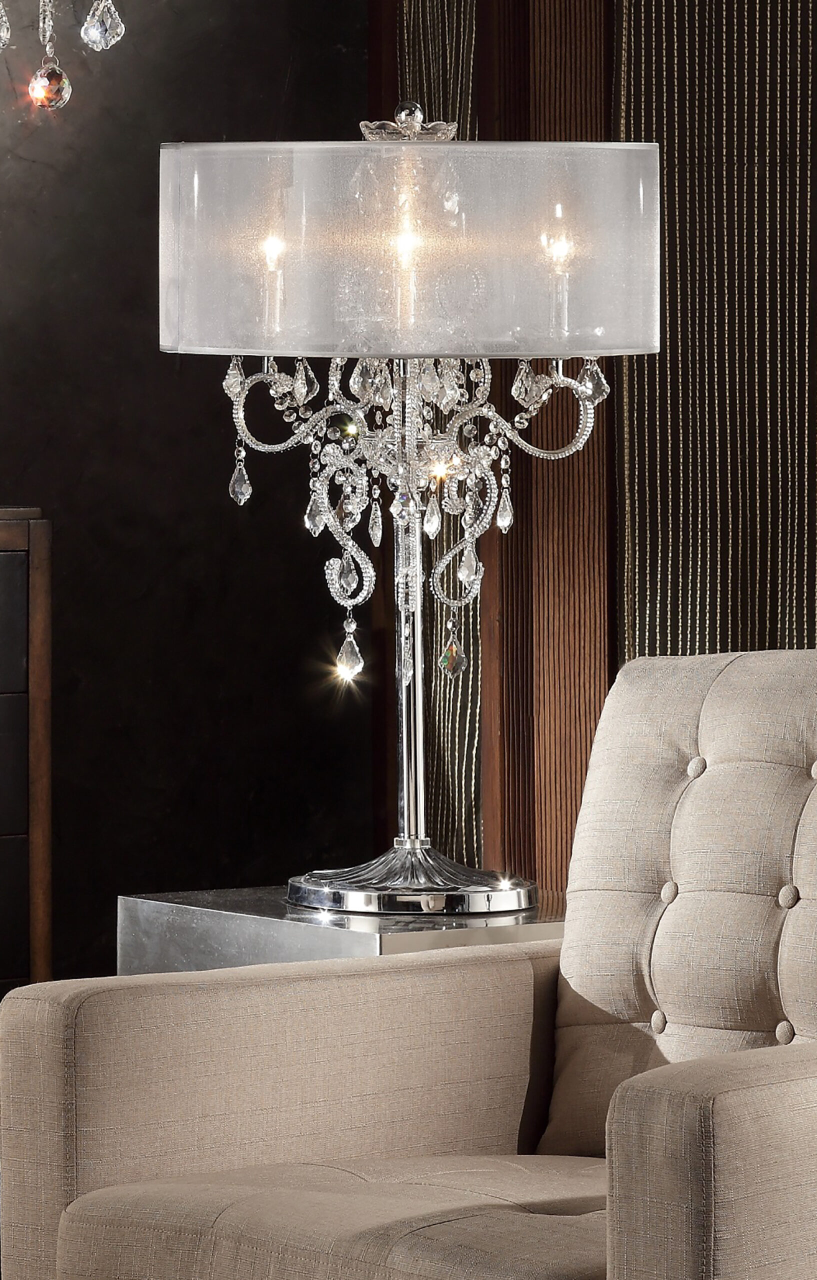 This Evangelia Crystal Table Lamp is an enchanting piece that is absolutely breath taking, an ideal addition to any room whether modern, contemporary, vintage, or rustic. Attention grabbing, place this table lamp in any room to complete the room decor. Beautifully decorated, a chic and elegant lamp that is a stylish all around; a lamp that will surely be the center piece that lights up the room. This Evangelia Crystal Table Lamp is chic and elegant, decorated with beautiful 100% imported crystals.